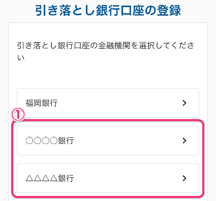 口座振替(引き落とし)を行う口座の金融機関を選択します。