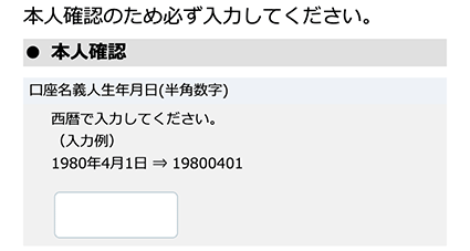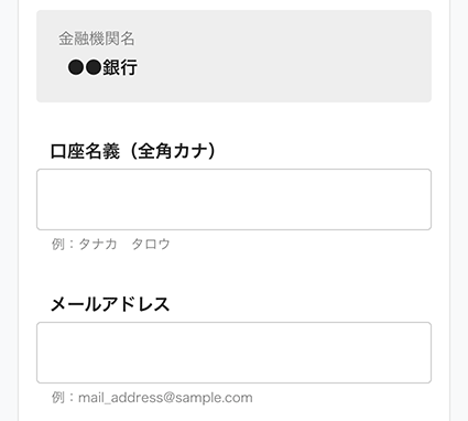 口座振替(引き落とし)口座の口座名義と、申込み完了のお知らせを送信するメールアドレスを入力します。