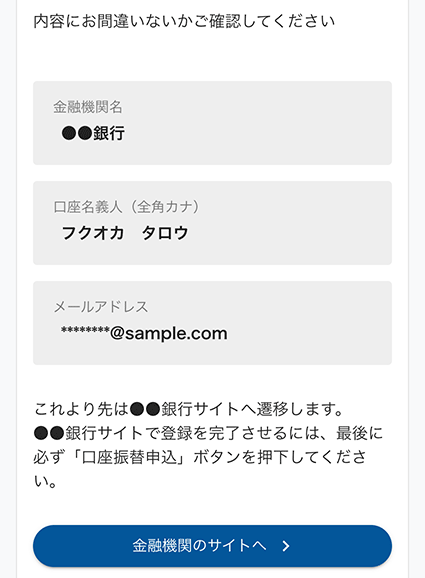 確認画面が表示しますので「金融機関のサイトへ」を選択します。