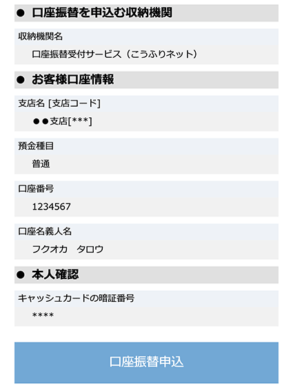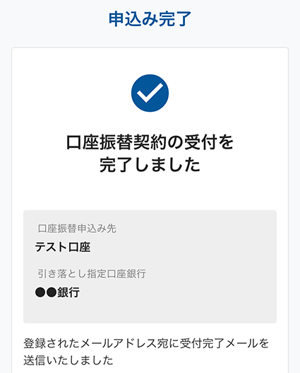 申込み内容にお間違いがないことを確認の上、「口座振替申込」を選択します。